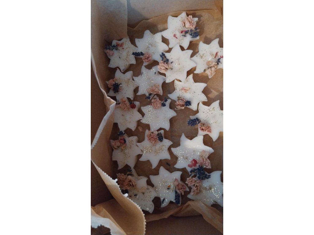 Malé plovoucí slunce z přírodního sójového vosku, bez aroma, zdobené sušenými květy, kadidlem, či purpurou. Velká radost v malé svíčce. Propojení živlů. Oslava slunovratu. Oživená vánoční tradice. I krásný dárek jen tak.